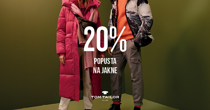 20% popusta na jakne od 18.9. -1.10.2019. u radnji Tom Tailor. Čekamo vas!