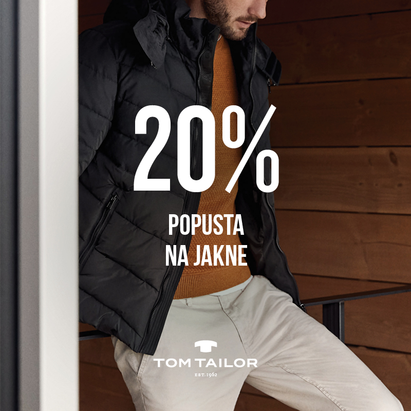 20% popusta na jakne u radnji Tom Tailor samo do 29.9. Očekuju te fantastični modeli i veliki izbor jakni!