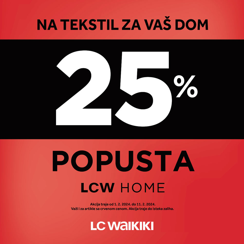 U LC Waikiki radnjama vas očekuje 25% popusta na tekstilne proizvode iz LCW Home kolekcije.