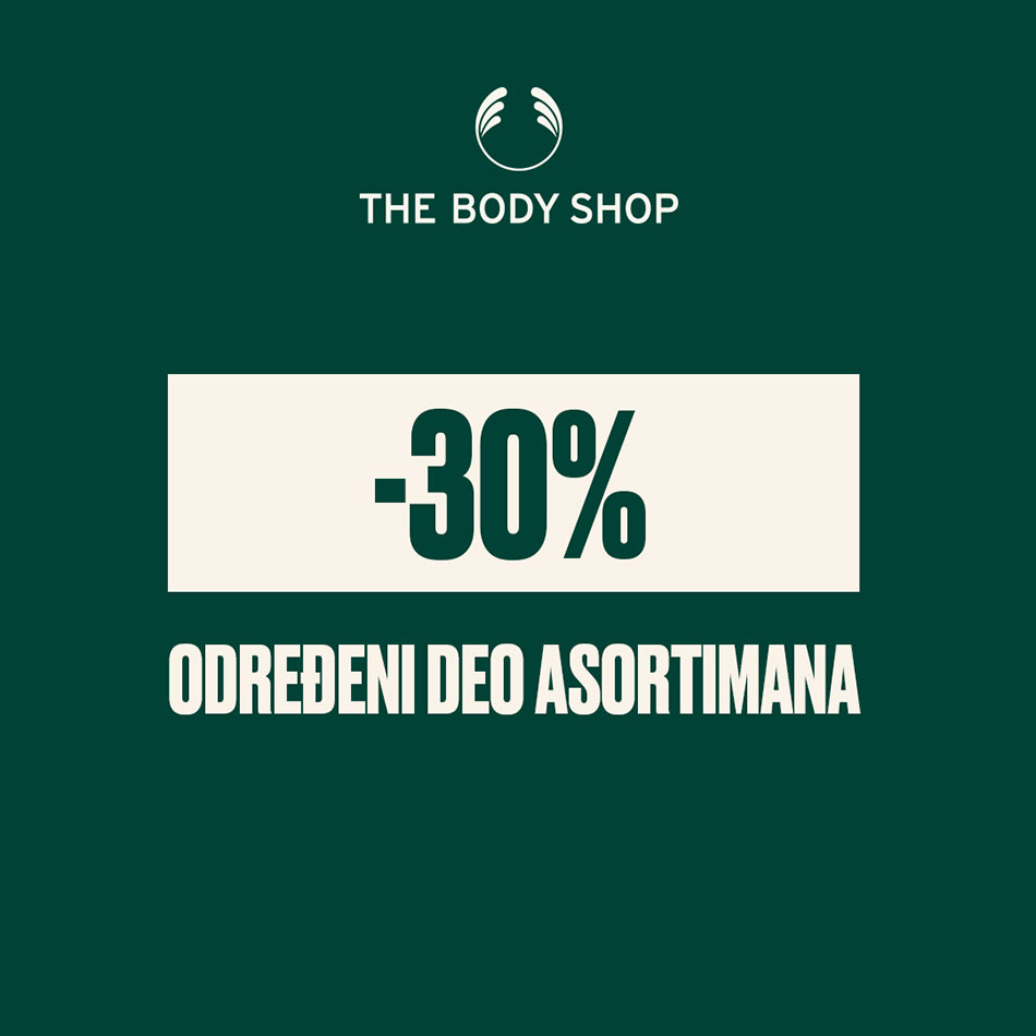 Iskoristite priliku I posetite The Body Shop radnju u periodu od 4. do 6. Novembra, očekuje vas 30% na određeni deo asortimana.
