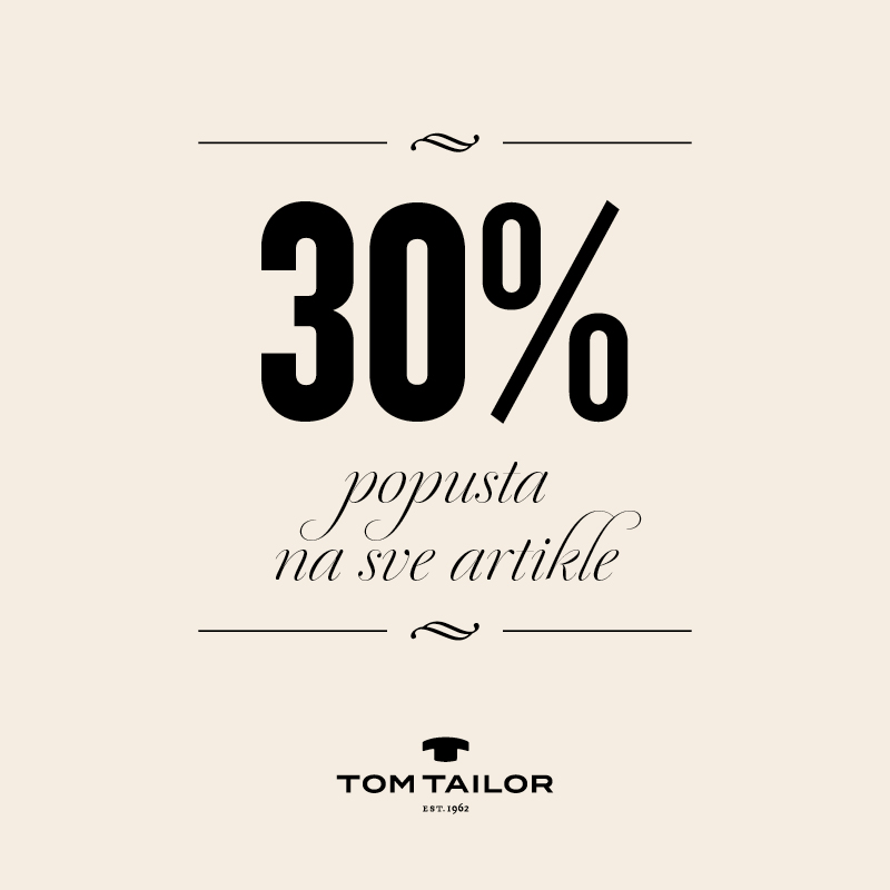 30% popusta na sve artikle u radnji Tom Tailor do 15.12.2020. Uživajte u bezbednoj kupovini!