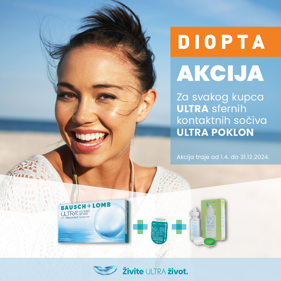 Uz svaku kupovinu ULTRA sfernih kontaktnih sočiva na poklon dobijate blister iste dioptrije i BioTrue rastvor od 60ml 🎁