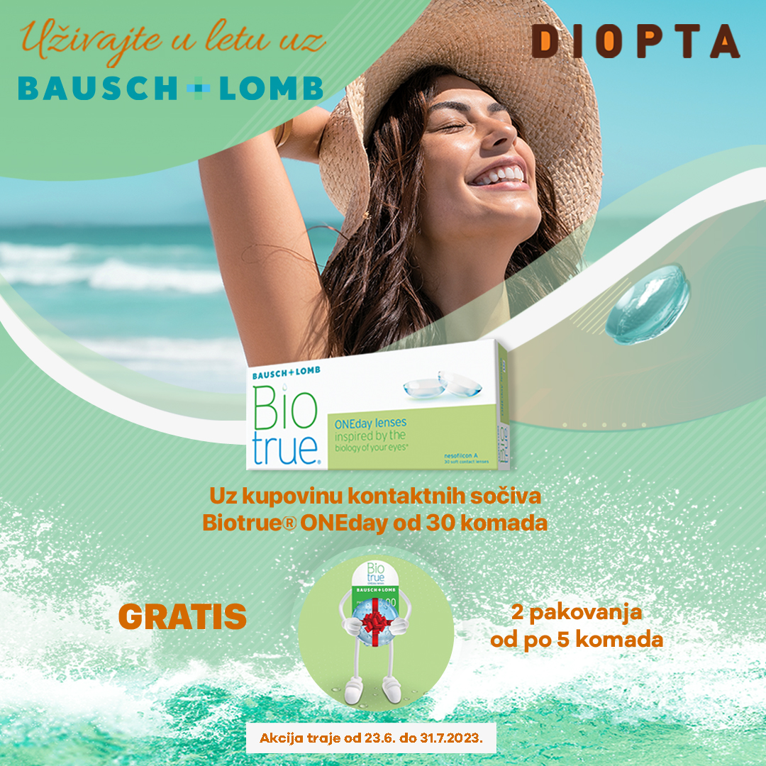 Uz kupovinu kontaktnih sočiva Biotrue®️ ONEday od 30 komada GRATIS 2 pakovanja od po 5 komada!