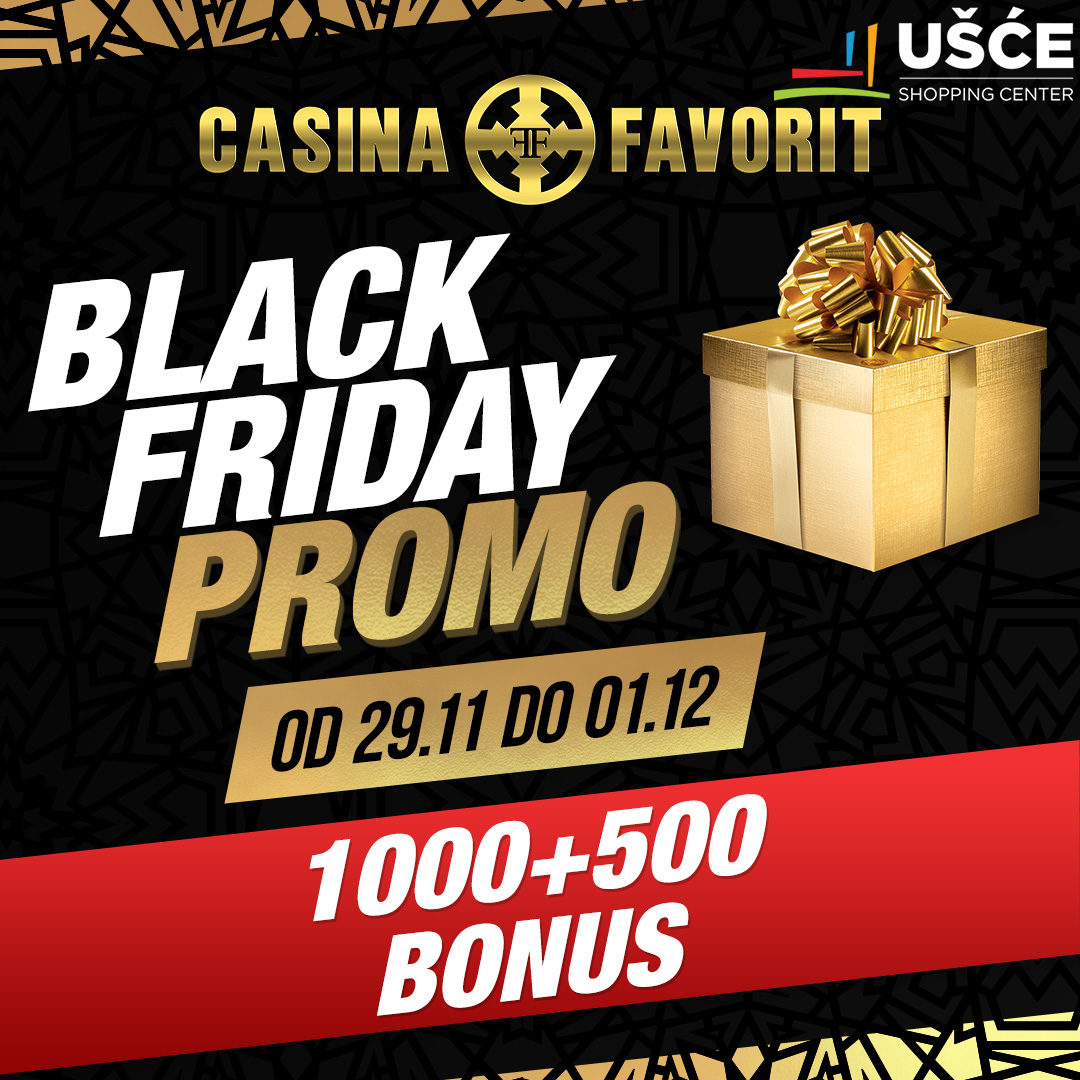 Casina Favorit opet nagradjuje, u toku black friday-a pripremili smo za vas promociju 1000+500 za svakog posetioca lokala, sva tri dana. Jer Casina Favorit uvek daje više!