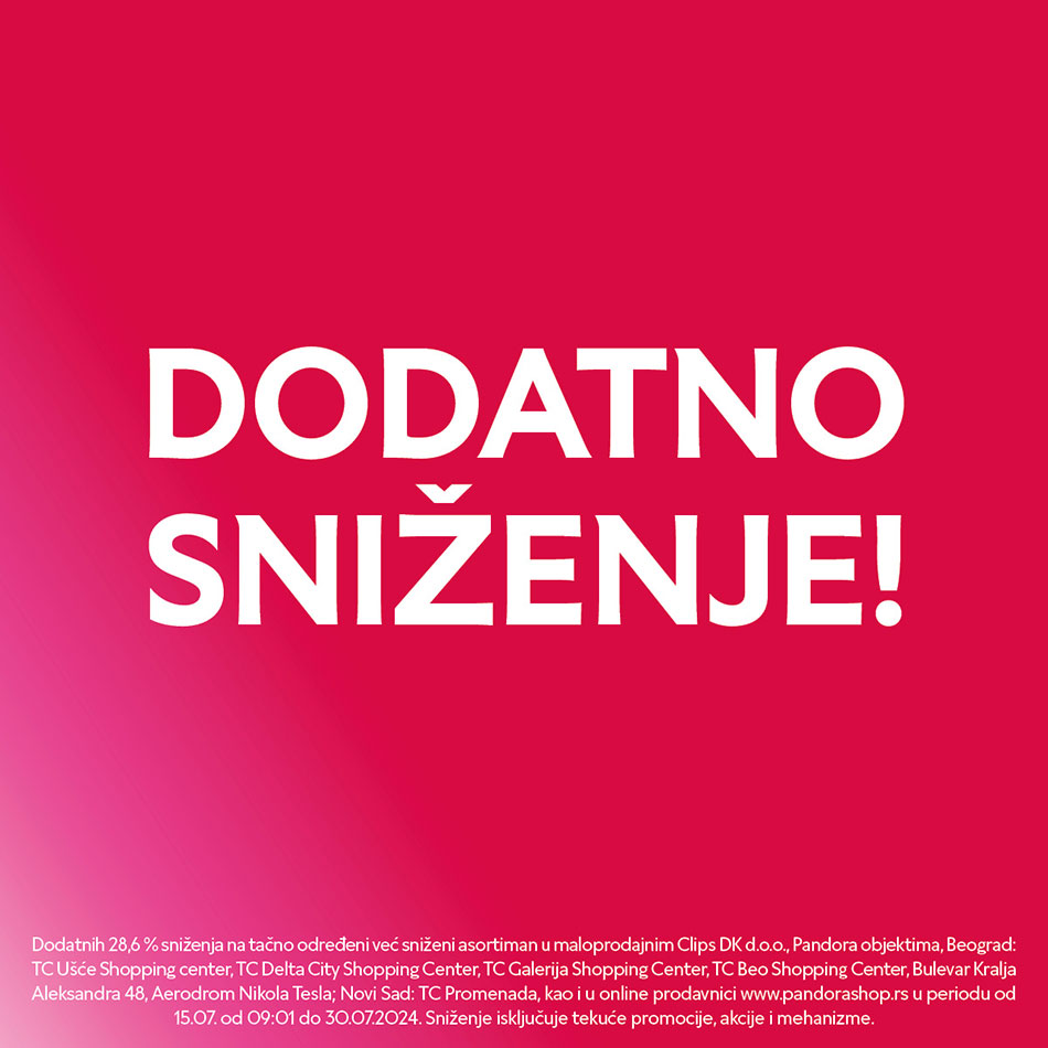 Dodatnih 28,6 % sniženja na tačno određeni već sniženi u periodu od 15.07. do 30.07.2024. Sniženje isključuje tekuće promocije, akcije i mehanizme.
