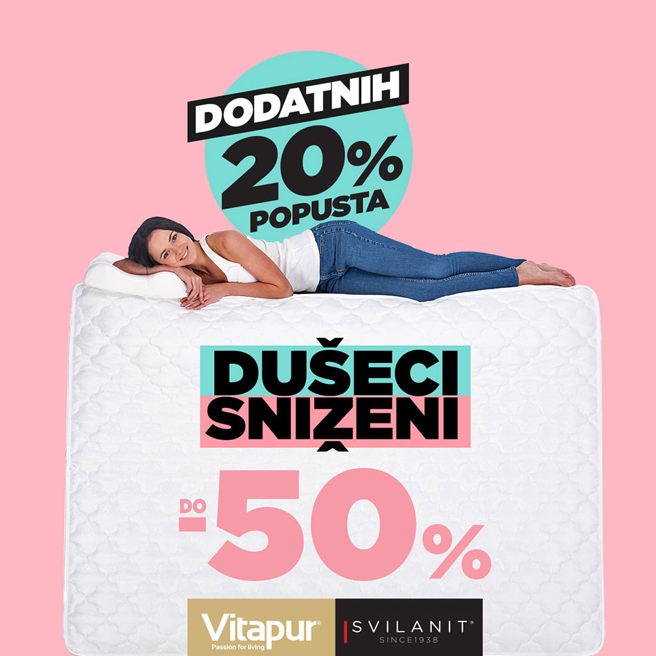 U @Vitapur Srbija očekuje vas veliki izbor dušeka od pene i sa džepičastim oprugama sa popustom i do -50%, i dodatnim popustom od -20% na sve već snižene cene samo do 28.03.