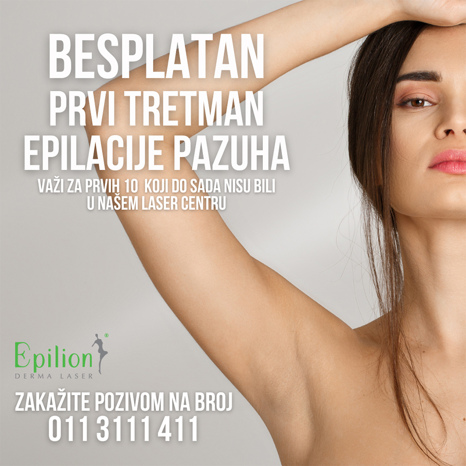 Prvih 10 koji se jave i zakažu epilaciju, 3. i 4. Juna od 10 do 15h, dobiće na poklon svoj prvi tretman laserske epilacije pazuha.
