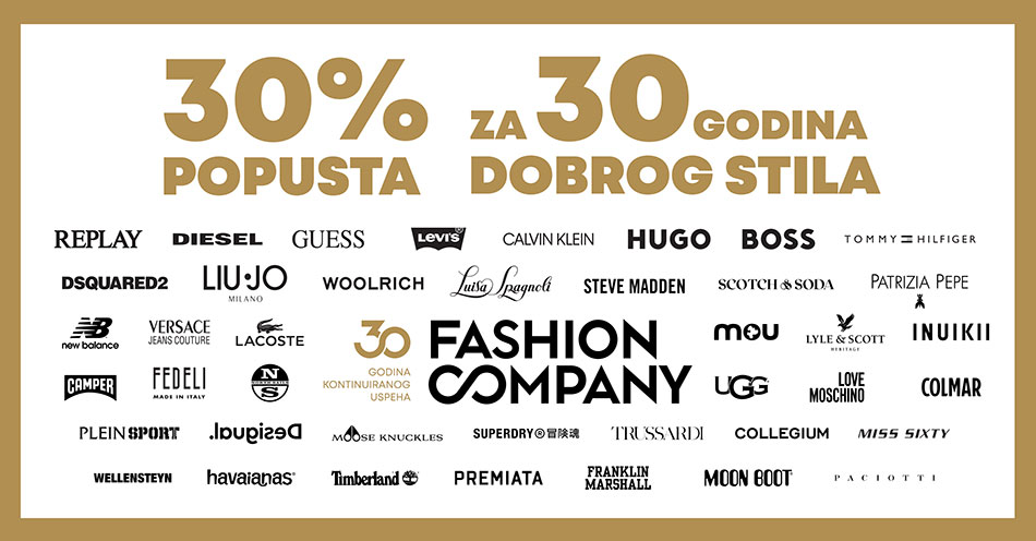 U sredu, 10. maja, Fashion Company obeležava tridesetogodišnjicu od osnivanja uz 30%