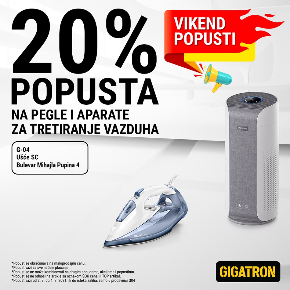 20% popusta na pegle i aparate za tretiranje vazduha