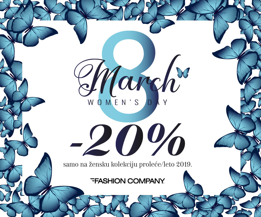 Međunarodni dan žena idealna je prilika za nezaboravan šoping. Nove ženske kolekcije tek pristigle u FASHION COMPANY prodavnice samo 8. marta snižene su čak 20%. Zahvalite se voljenoj ženi i poklonite joj savršen poklon kojim će naglasiti svoju izvornu lepotu. Najatraktivnije komade odeće, obuće i aksesoara vodećih svetskih urbanih modnih brendova možete naći u našim radnjama FASHION&FRIENDS, DIESEL, TOMMY HILFIGER, LEVI’S, GUESS, TIMBERLAND, BATA I CALVIN KLEIN UNDERWEAR u Ušće shopping centru.