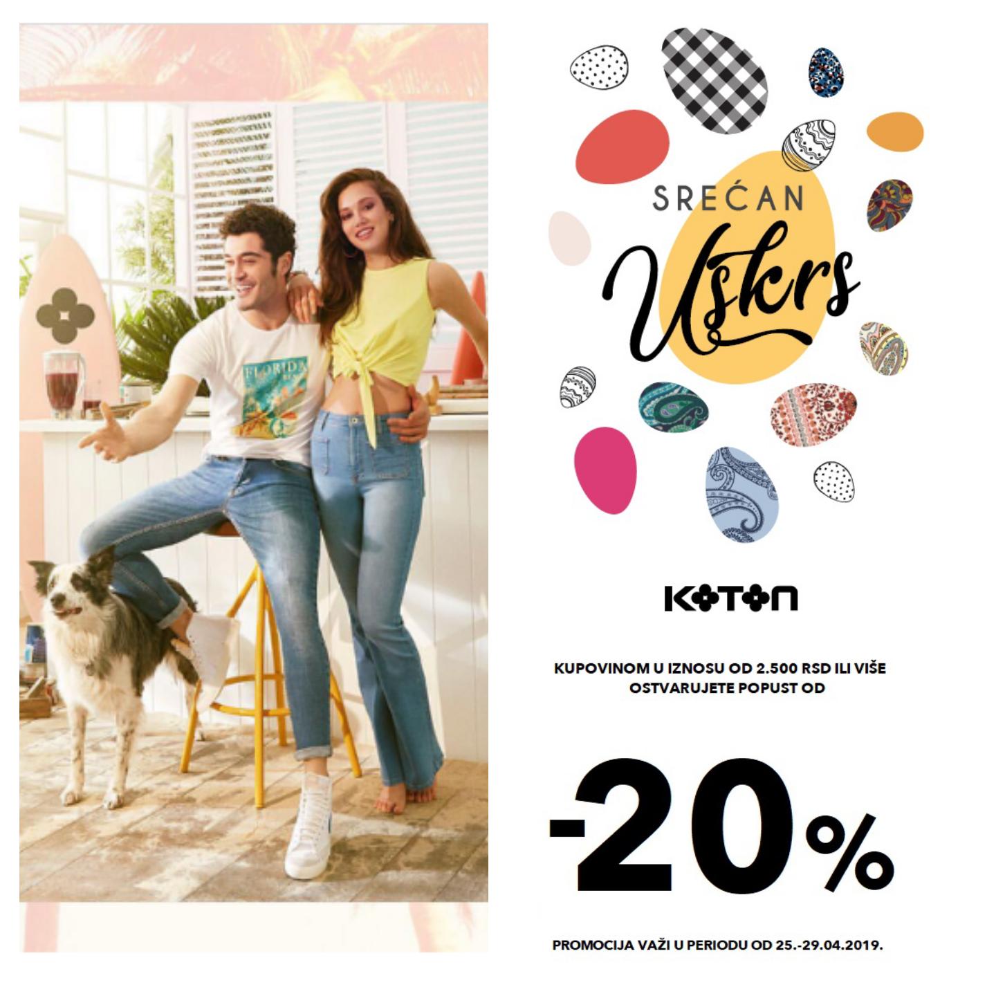 Kupovinom u iznosu od 2.500 ili više dinara ostvarujete popust od 20%. Promocija važi u periodu od 25.04. do 29.04.2019. godine.