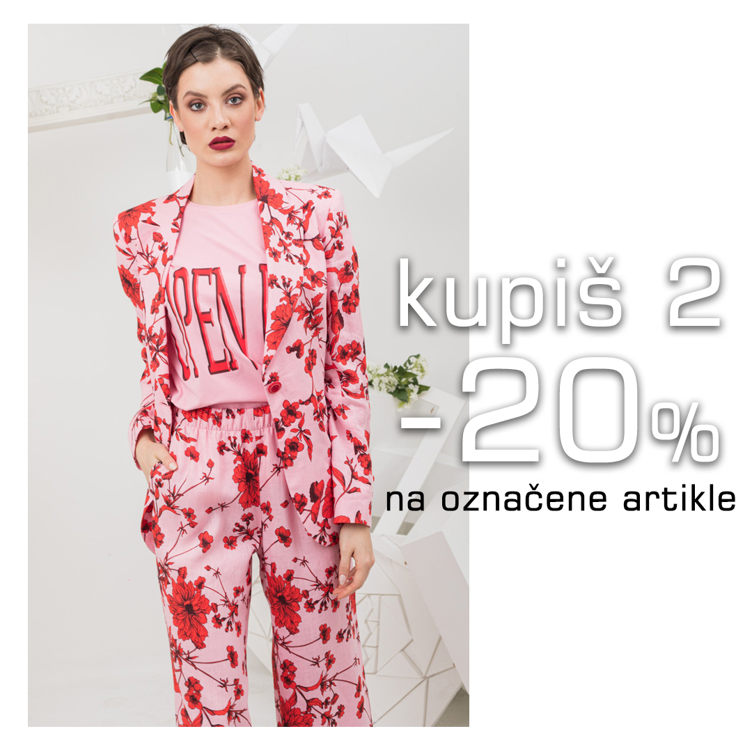 Od četvrtka 04. do srede 10. juna za kupljena dva ili više artikala iz celog asortimana, ostvarite popust od 20% na označene artikle.