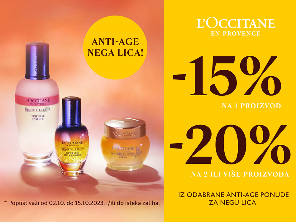 -15% na 1 PROIZVOD ili -20% na 2 ili VIŠE PROIZVODA. Poklonite svojoj koži pažnju koju zaslužuje uz naše vrhunske proizvode za anti-age negu. Ne propustite priliku – akcija traje ograničeno vreme!