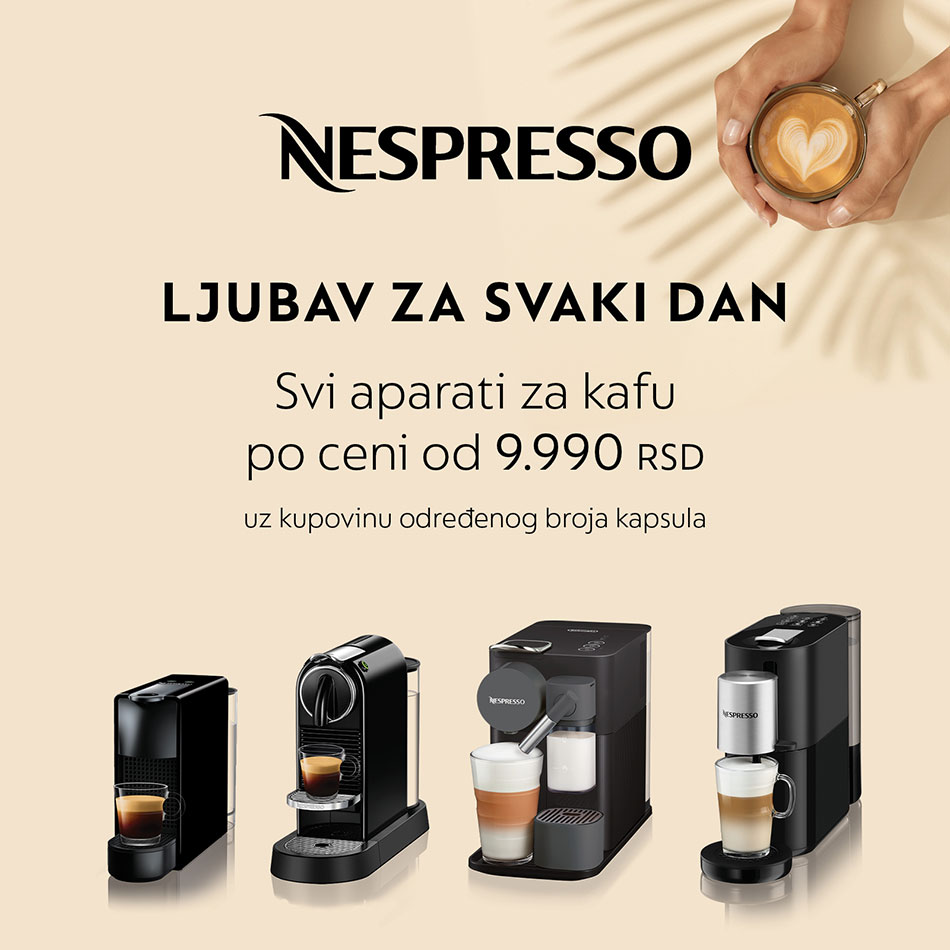 Svi Nespresso aparati za kafu po ceni od 9.990 RSD uz kupovinu određenog broja kapsula.*