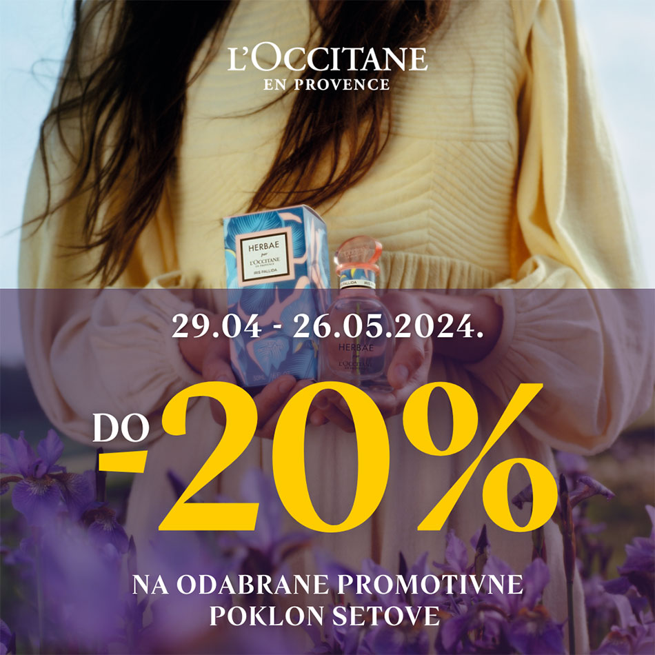 Herbae Iris Pallida L’OCCITANE vas poziva na mirisno putovanje! Izuzetne kolekcije očaravajućih prirodnih mirisa i neodoljivih tekstura proizvoda čekaju vas, upakovane u prepoznatljive L’OCCITANE poklon kutije! Sada sa 20% popusta! Promotivna ponuda traje do 26.05.2024. ili do isteka zaliha.