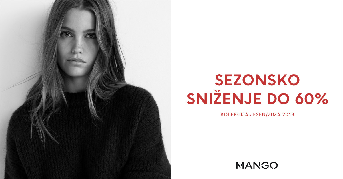 Španski modni brend MANGO vas je obradovao minusom kojem ne možete odoleti. Od četvrtka 24. januara 2019. startovalo je sezonsko sniženje do 60% na kolekciju jesen/zima 2018. Odeća, obuća i aksesoar samo su neki od predloga kojim možete obradovati sebe ili vama dragu osobu. Očekujemo vas u MANGO prodavnici u Ušće shopping centru.