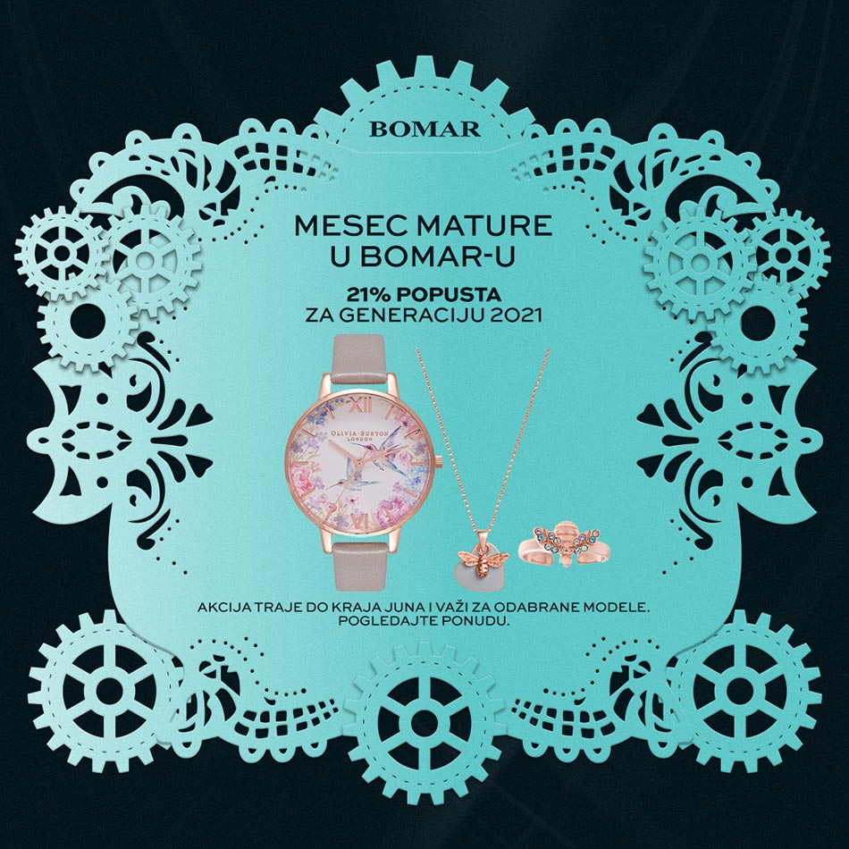 Mesec mature u BOMAR-u traje još samo dva dana. Požurite po svoj omiljeni model najpopularnijih brendova : OLIVIA BURTON, CO88, COMO, TIMBERLAND I WELDER MOODY.