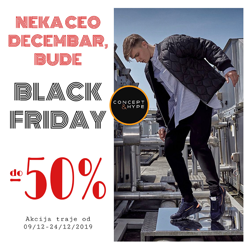 “Neka ceo Decembar, bude BLACK FRIDAY!” naziv je akcije koja je počela u prodavnici Concept & Hype sa sniženjima čak do -50%. Akcija traje od 09.12-24.12.2019. Požurite u Concept & Hype i odaberite vaš najbolji par!