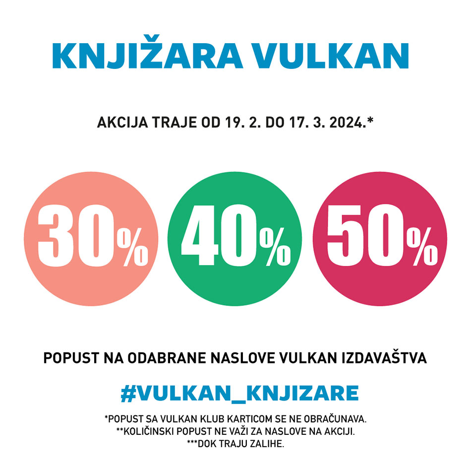 Nova Vulkanova akcija je počela! Odabrane knjige su na popustima od 30%, 40% i 50%! Akcija traje od 19. februara do 17. marta u tvojoj Vulkan knjižari!