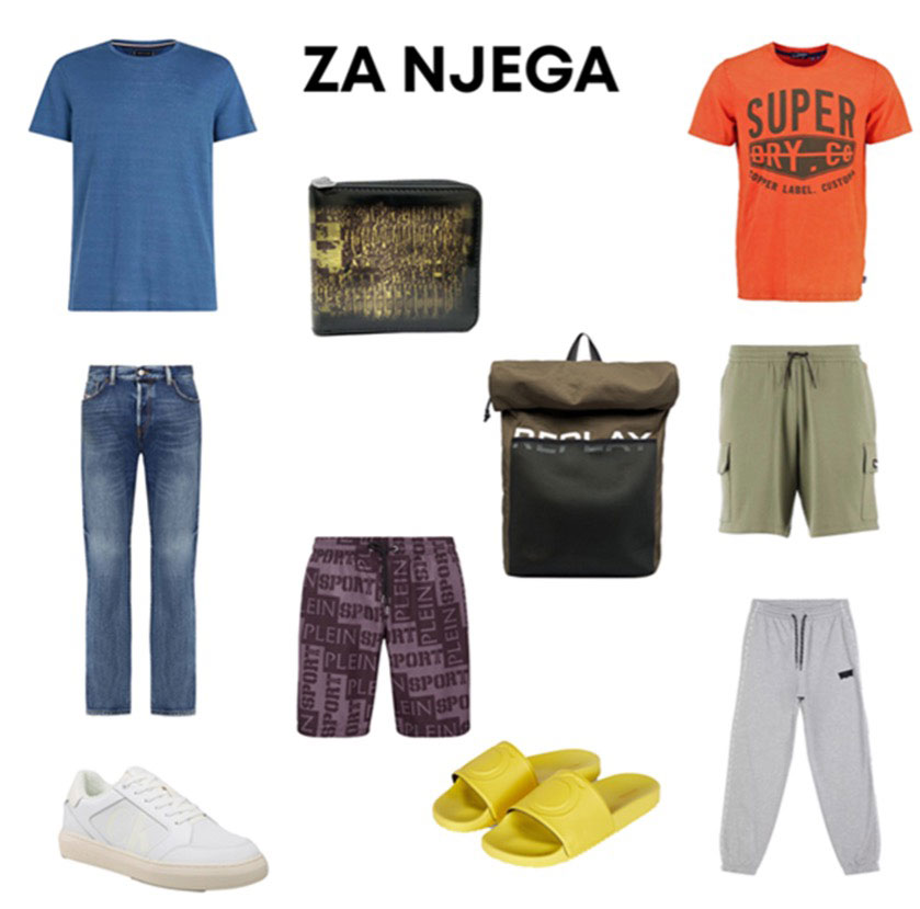 Tommy Hilfiger majica, Diesel kožni novčanik, Superdry majica, Diesel farmerke, Replay ranac, Timberland bermude, Plein Sport kupaći, Calvin Klein patike, Trussardi papuče, Levi’s trenerka