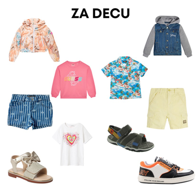 Replay jakna za devojčice, Guess jakna za dečake, Guess duks za devojčice, Replay košulja za dečake, Guess šorts za devojčice, Guess šorts za dečake, Desigual majica, Timberland sandale Liu Jo sandale, Replay patike