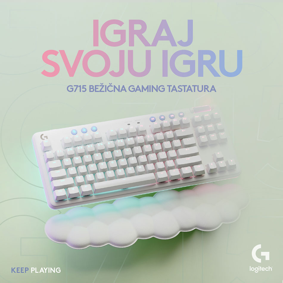 Igraj svoju igru sa “kao oblak” udobnom podlogom za zglobove na Lohitech G715 bežičnoj tastaturi sa tactile ili red linear switchevima, i u udobnim Logitech G735 bežičnim gaming slušalicama.