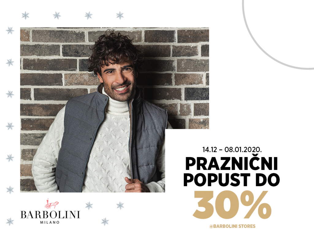 Od 14.12.2019. do 8.1.2020. u Barbolini store-u vas očekuje praznični popust do 30% na jesen/zima kolekciju!
