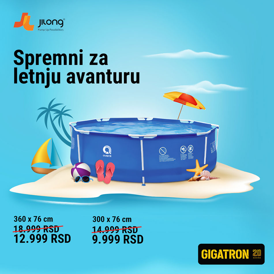Opremite svoje dvorište uz Jilong bazene, i pripremite se za letnje vreline! U Gigatronu vas očekuju specijalne cene bazena i dodatne opreme.