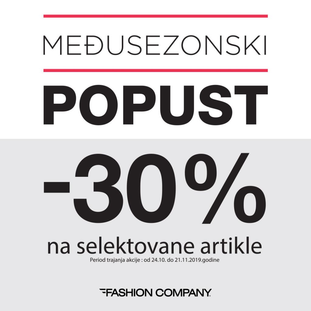 Od 24. oktobra iskoristite 30% popusta na odabrane artikle iz kolekcije jesen/zima 2019. u prodavnicama Fashion Company i uživajte u stvaranju savršenog jesenjeg stajlinga.