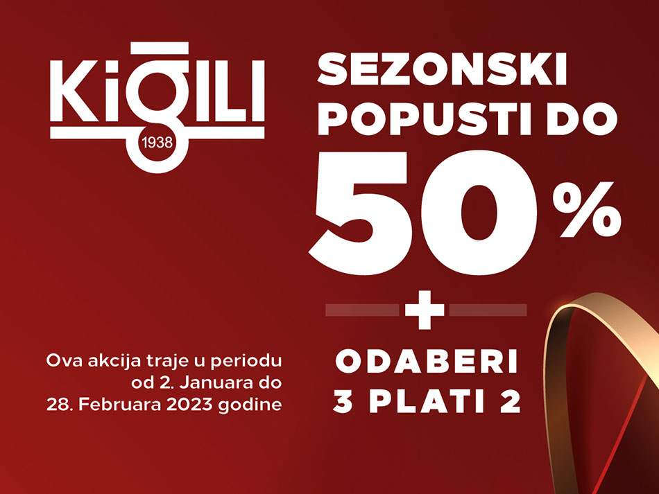U periodu od 02.01.2023. do 28.02.2023. u našoj radnji vas očekuju popusti do 50% + odaberi 3 plati 2 na sve proizvode iz ponude!