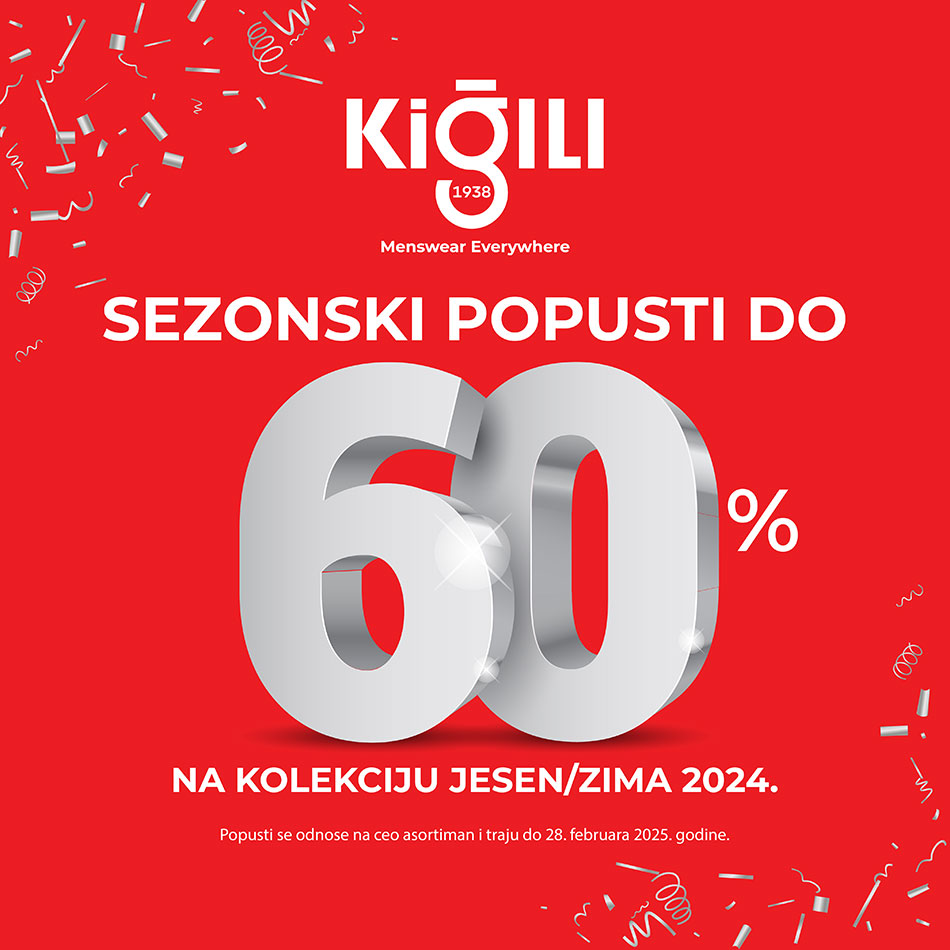 SEZONSKI POPUSTI DO 60% NA KOLEKCIJU JESEN/ZIMA 2024 i traju od 24.01.2025. do 28.02.2025.