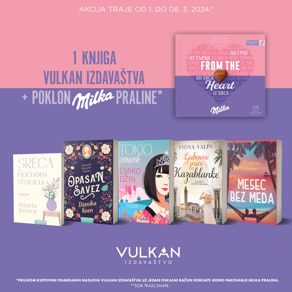 Najlepši izbor u susret Danu žena čeka vas u vašoj Vulkan knjižari! Kupovinom jedne od pet najnovijih knjiga Vulkan izdavaštva na poklon dobijate neodoljive Milka praline. 📚
