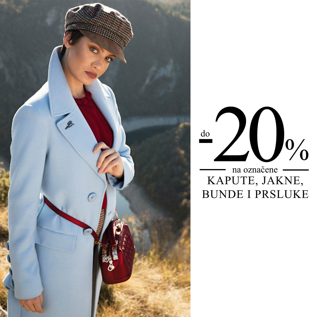 Od 16. do 28. novembra iskoristite priliku i ostvarite popust do -20% na određene modele kaputa, jakni, bundi i prsluka.