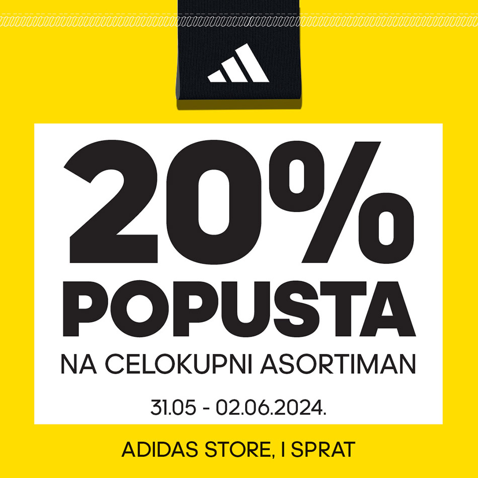 🎈 Specijalna adidas ponuda! 🎈 Od 31.05 do 2.06, očekuje vas 20% popusta na celokupan asortiman! 🏃♀️👕