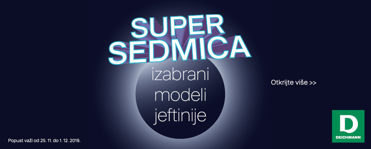 Širok izbor obuće po sniženim cenama! Akcija važi za označene artikle. Popusti se međusobno ne sabiraju. Akcija traje od 25. 11. do 01. 12. 2019. Ne čekajte, dobro nam došli ! J
