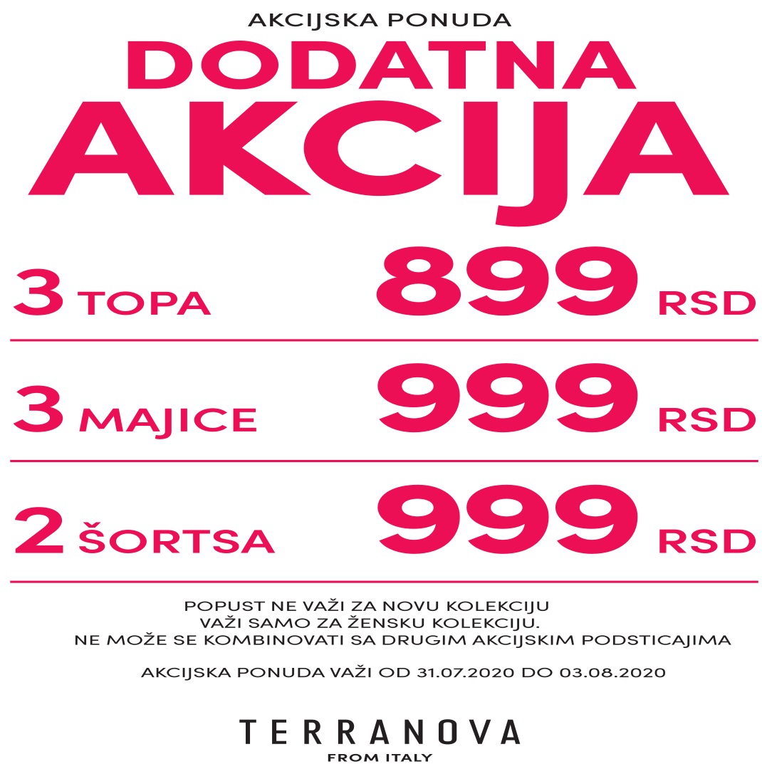 Terranova počinje danas 31.07.2020. sa dodatnom akcijom koja vazi za Usce. Dodatna akcija traje do 03.08.2020