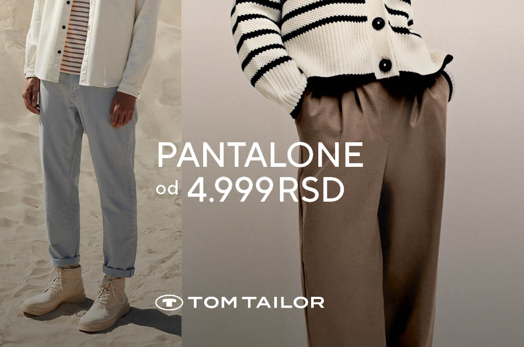 Pantalone od 4.999,00 rsd u radnji Tom Tailor samo do 8.3.2022. Posetite naše radnje i obradujte sebe novim pantalonama!
