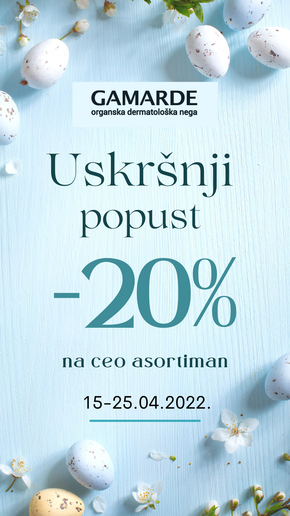 Uskršnji popust -20% na ceo asortiman koji traje 15-25.04.2022.