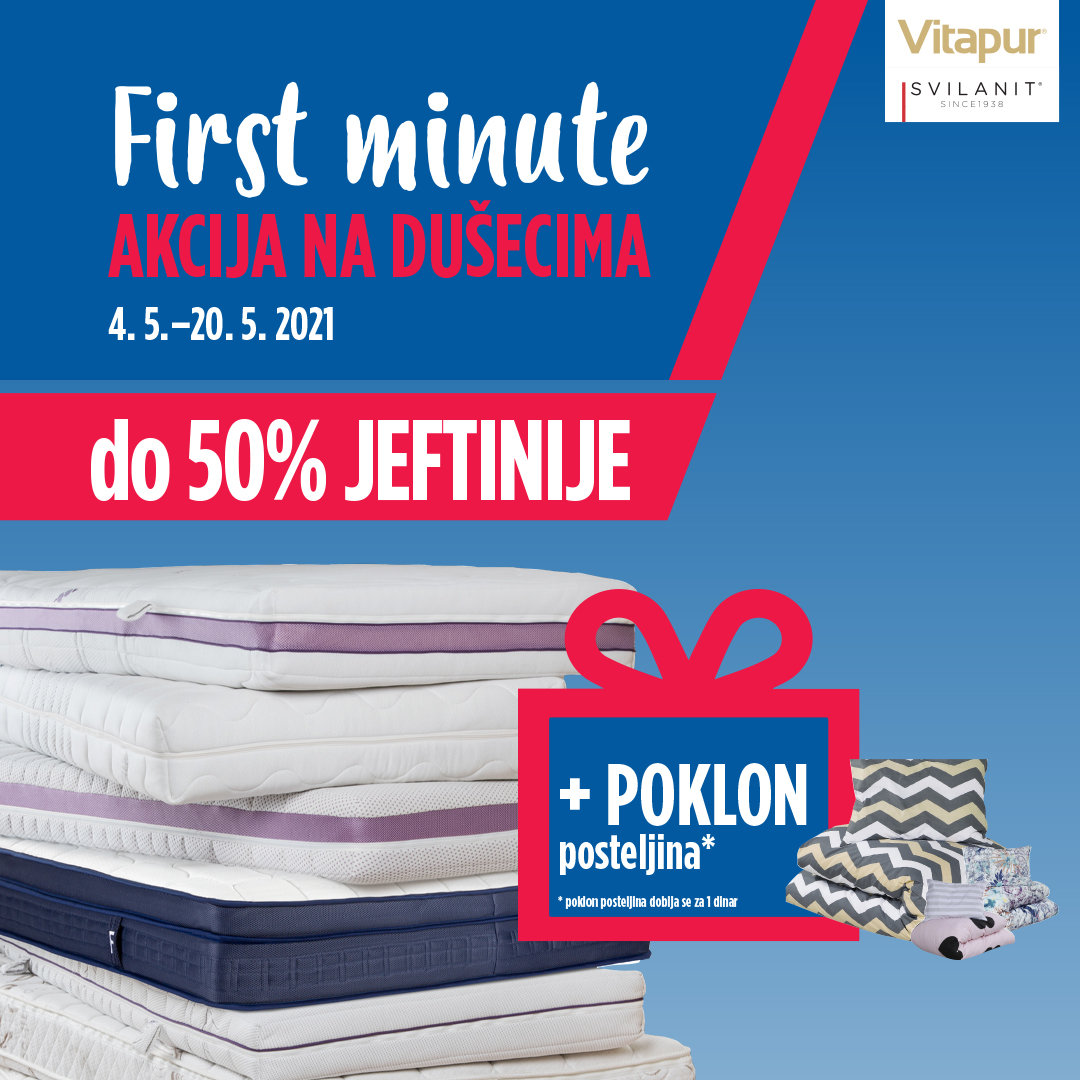 Do 50% popusta na sve modele dušeka + poklon Svilanit posteljina očekuje vas u Vitapur Srbija radnji na 2. spratu do 20.05.