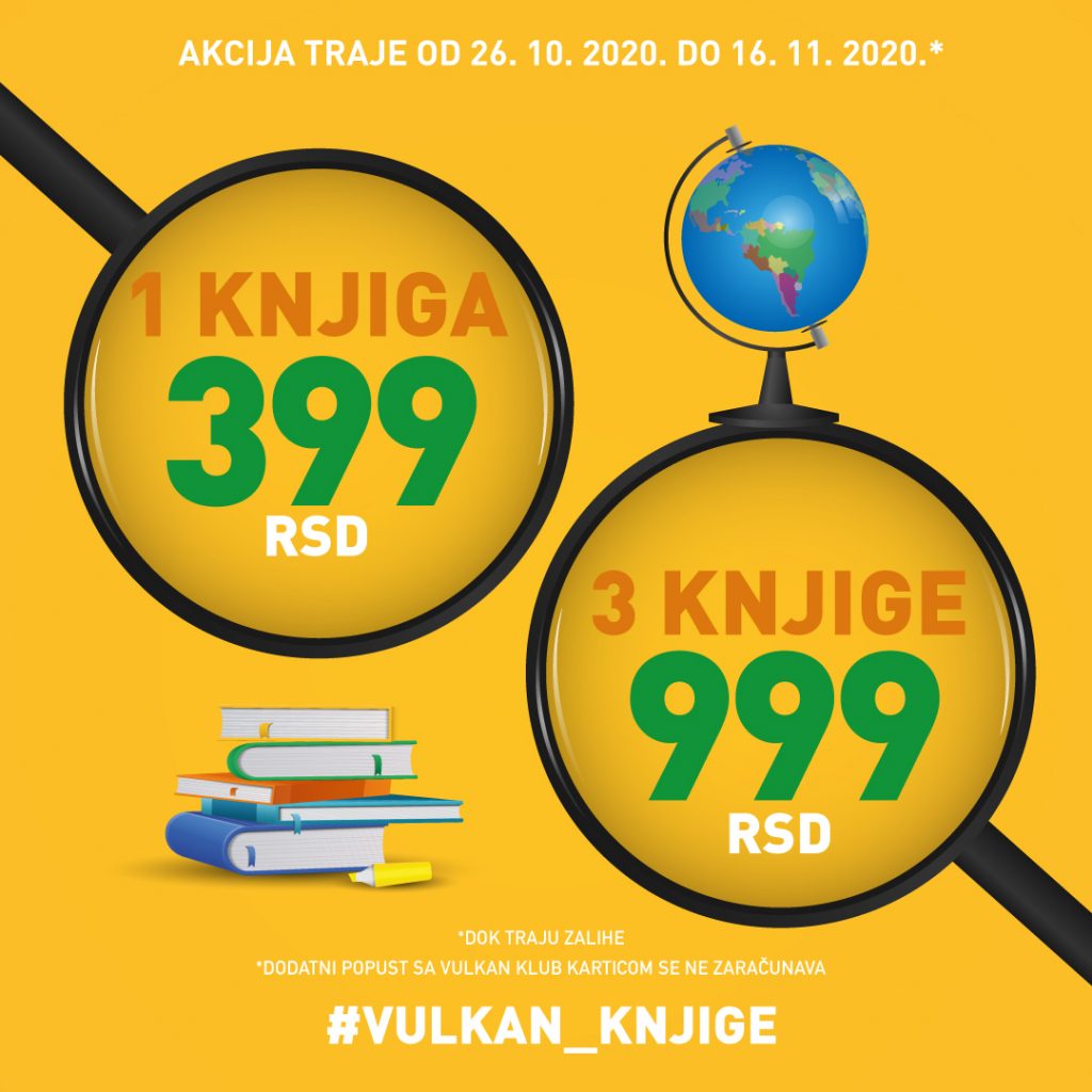 AKCIJA: Jedna knjiga za 399 dinara ili tri knjige za 999 dinara traje do 16. novembra u Vulkan knjižari u našem šoping centru i važi na odabrane HIT naslove za odrasle i decu.