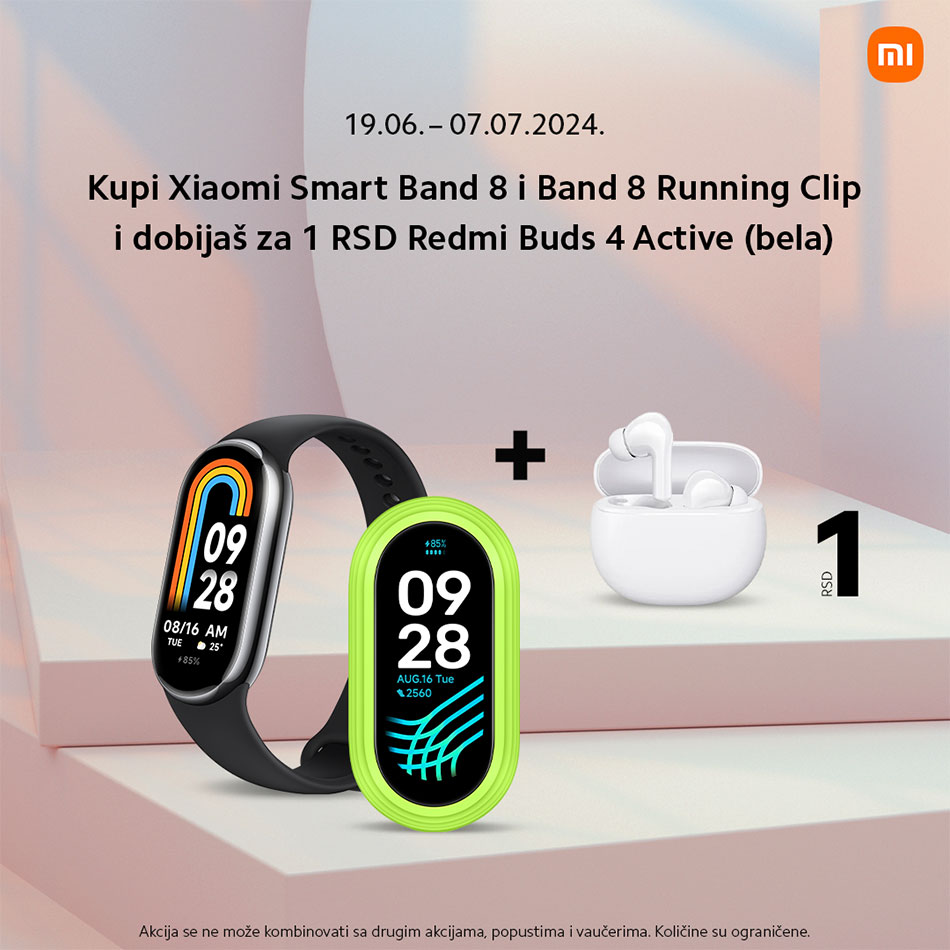 Kupi Xiaomi Smart Band 8 i Band 8 Running Clip i dobijaš za 1 RSD Redmi Buds 4 Active (bela)