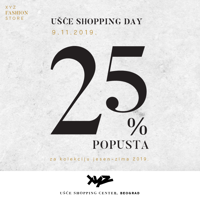 XYZ vas poziva na fenomenalnih 25% popusta 9.11.2019. Modna poslastica za sve ljubitelje dobrog šopinga!