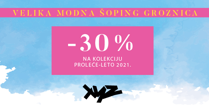 30% popusta na kolekciju proleće-leto 2021. najpoznatijih modnih brednova očekuje vas u radnji XYZ Fashion Store! Iskoristite sjajnu priliku do 31.5.2021.