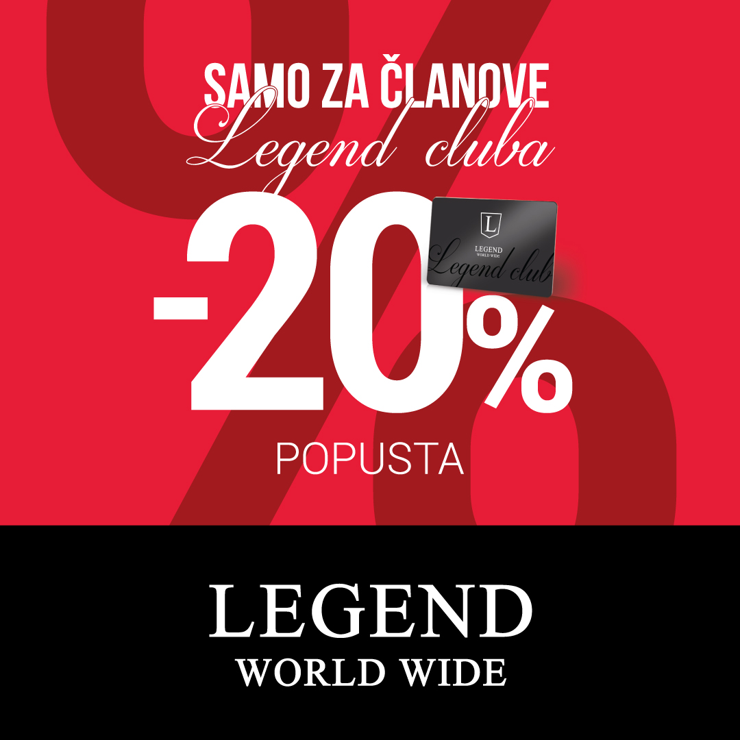 Za sve postojeće članove Legend kluba -20% popusta u period od 04.06 do 07.06. *Akcija se ne odnosi na basic asortiman, specijalnu ponudu i artikle koji su deo neke druge akcije.