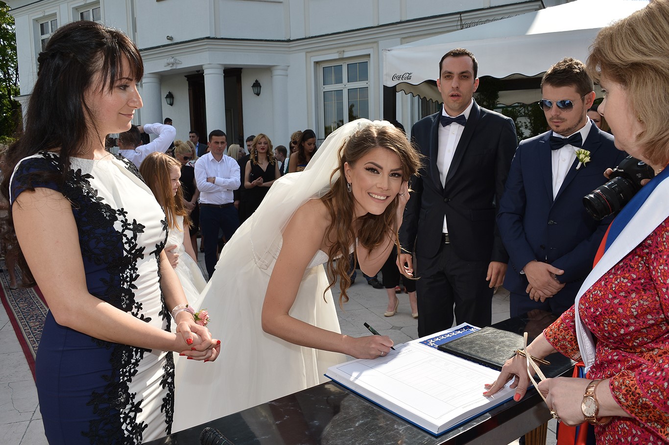 I tako za tili čas, našli smo se pred prelepom Crkvom Svetih apostola Petra i Pavla na Topčideru. Dok smo se vozili duž kratke relacije od vile do crkve, pomislila sam-ok, to je to, dešava se! Jesam bila uzbuđena, ali treme uopšte nije bilo. U trenutku kada se naš automobil zaustavio ispred crkve, osmotrila sam sva ta draga lica, primetila neizbežne trubače, a moram vam priznati da sam se osećala prelepo i srećno. Jedino što me je brinulo jeste da u crkvi uradimo sve kako treba. Ubrzo sam naravno uvidela da o tome zapravo i ne treba razmišljati, jer se sve dešava samo od sebe i spontano. Crkveno venčanje u najužem krugu bilo je čarobno, i ako se premišljate da li da DA izgovorite i pred Bogom, moja topla preporuka je da to nikako ne propustite.