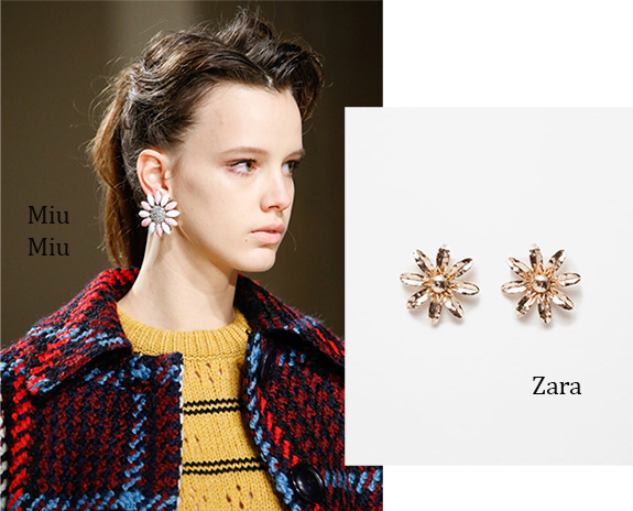 Ukoliko ste više girly girl devojka ista radnja takođe nudi “dizajnersko” rešenje, u sezoni proleće/leto 2016. Miuccia Prada je u Miu Miu liniji predložila romantične minđuše u obliku cvetića, a samo mrvicu manje glamurozna verzija dostupna je u Zari.