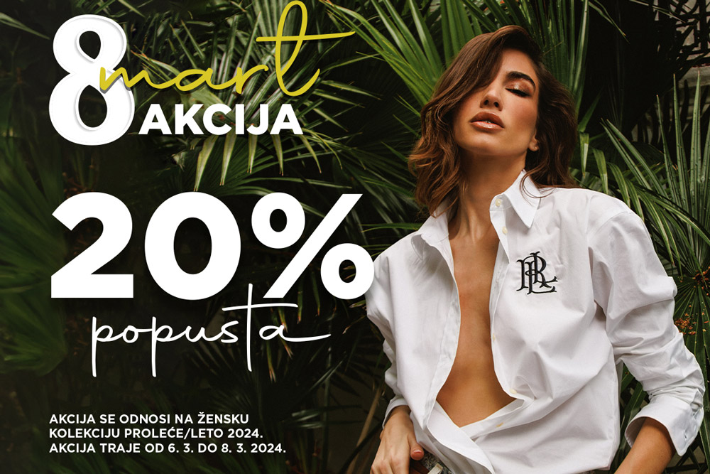 Iskoristite osmomartovski popust, od 6. do 8. marta, od -20% na žensku kolekciju proleće/leto 2024. u prodavnicama Fashion&Friends, Diesel, Tommy Hilfiger, Calvin Klein, Hugo, Guess, Levi’s I Timberland.