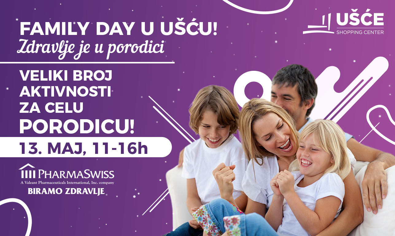 Međunarodni dan porodice biće obeležen u subotu, 13. maja, u periodu of 11 do 16 časova, ispred UŠĆE Shopping Centera uz brojne aktivnosti za celu porodicu i sve generacije.
