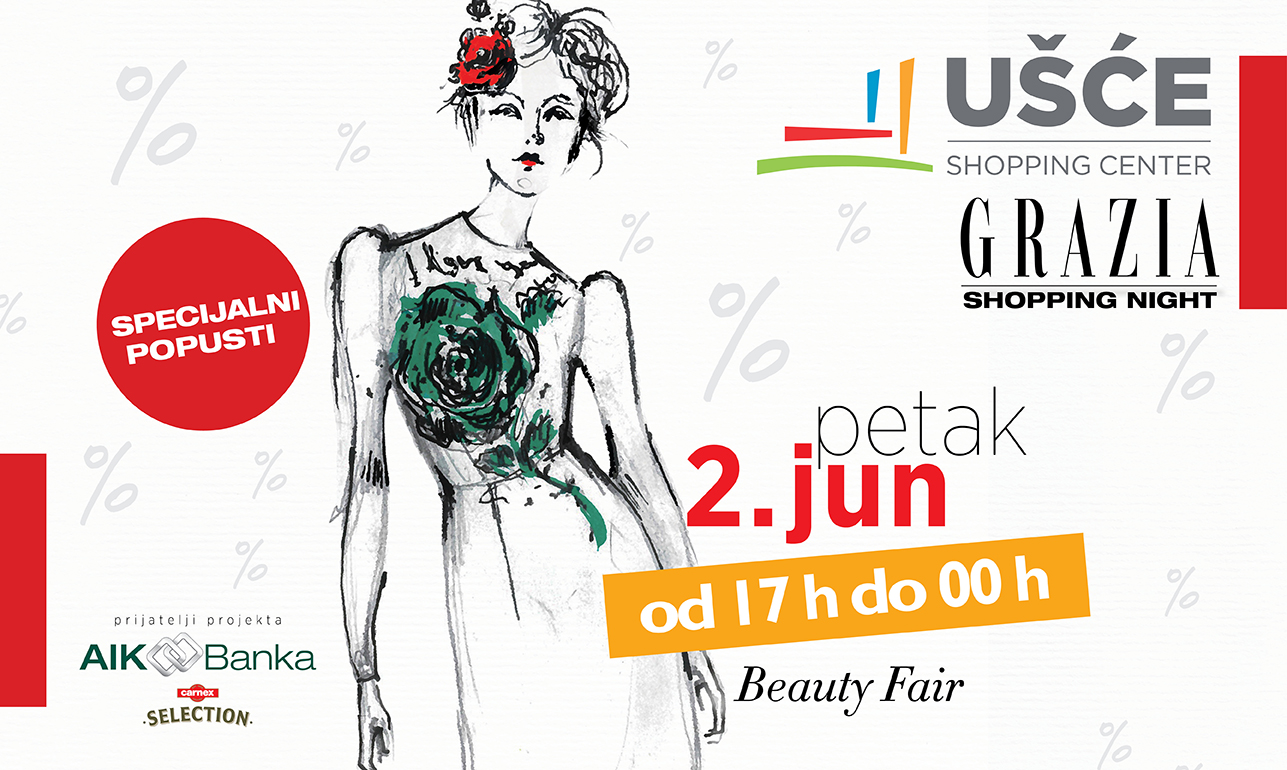 Noć savršene kupovine očekuje vas 2. juna u UŠĆE Shopping Centeru od 17 časova u okviru Grazia Shopping Night manifestacije, koja ovaj put ljubiteljima pametne kupovine garantuje spektakularne popuste i brojna iznenađenja.