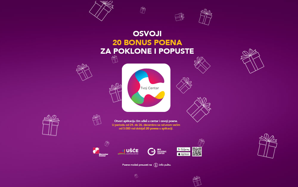 Od 24. do 26. decembra za svaki račun preko 5.000 RSD dobijaš dodatnih 20 poena u Tvoj Centar aplikaciji.